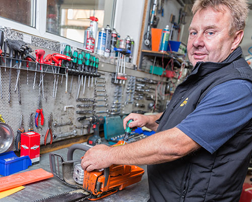 Wir liefern alle Geräte fertig montiert und betriebsbereit aus, damit Sie sofort mit der Gartenarbeit loslegen können und keine Ausfallzeiten in Kauf nehmen müssen. Damit Sie an Ihren Motorgeräten lange Zeit viel Freude haben, stehen wir vor Ort mit unserer eigenen Fachwerkstatt für Sie bereit. Nutzen Sie unseren Service, um Ihre Geräte regelmäßig warten zu lassen oder auch für Reparaturen aller Art. Unser kompetentes Fachpersonal steht Ihnen mit Rat und Tat bei der Instandsetzung und Werterhaltung Ihrer Geräte zur Seite.